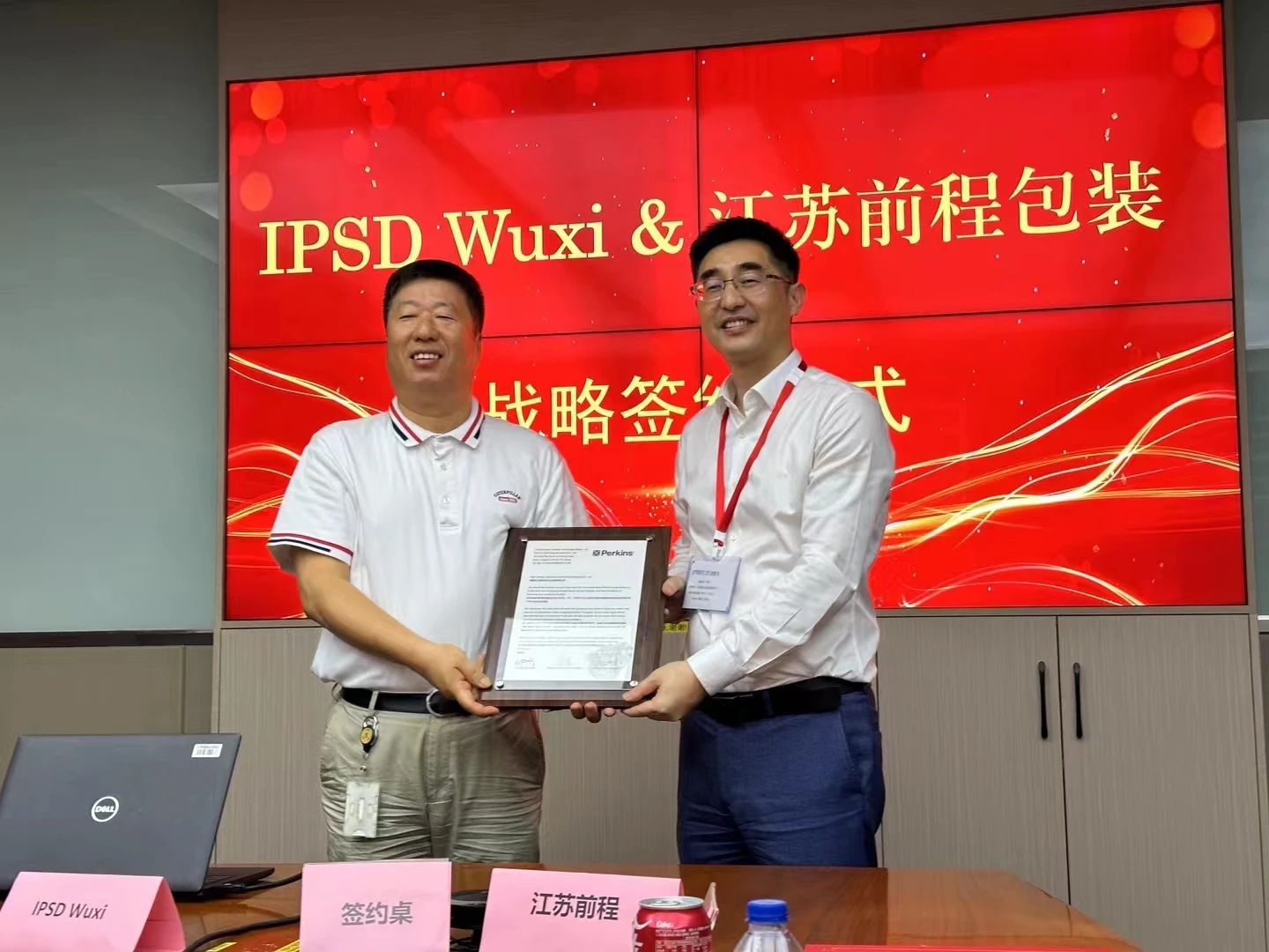 頒發(fā)優(yōu)秀供應(yīng)商證書,IPSD Wuxi總經(jīng)理吳洪齊與前程公司總經(jīng)理徐穎合影留念